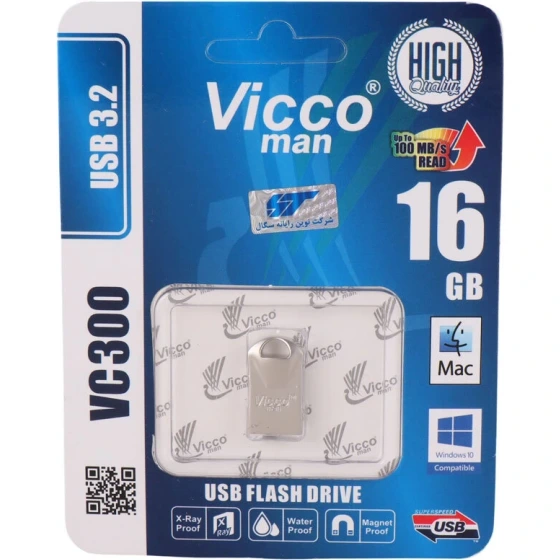 فلاش مموری ViccoMan VC300 ظرفیت 16 گیگابایت USB-3.2 انتخابی عالی برای کسانی که به دنبال ذخیره‌سازی سریع، ایمن و مقاوم برای فایل‌های مهم‌شان هستند. این محصول با بدنه فلزی، سرعت مناسب و گارانتی معتبر، یکی از گزینه‌های مناسب برای استفاده‌ی روزمره، انتقال فایل، بک‌آپ و همراه موبایل یا لپ‌تاپ است.